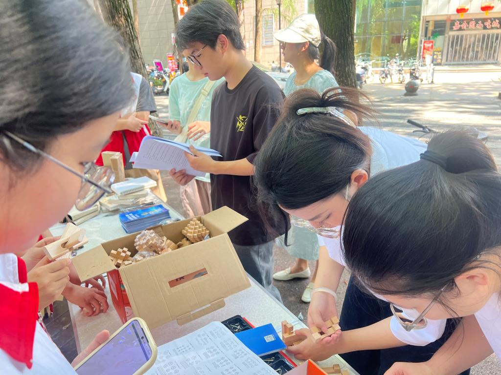鲁班锁的榫卯结构像防火墙,九连环的环环相扣就像强密码,同学们直接上手“硬刚”“咔嗒”解锁鲁班锁,九连环在手中穿梭瞬间领悟“隐私防护要环环相扣,这把是传统智慧和网安知识的“梦幻联动”。