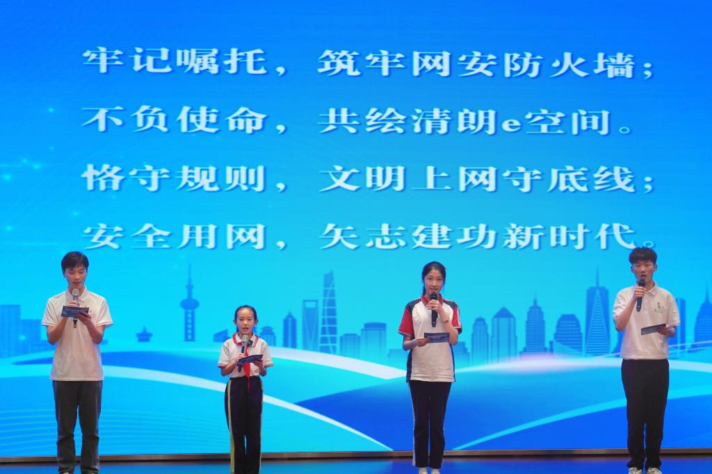 活动现场,来自湖北大学和湖北大学附属中学、附属小学的大、中、小学生代表,携手向广大青少年朋友发出“清朗网空”倡议,以铿锵誓言表达了湖北青少年争当“中国好网民”,共同捍卫国家网络安全、营造清朗有序网络空间的坚定决心。