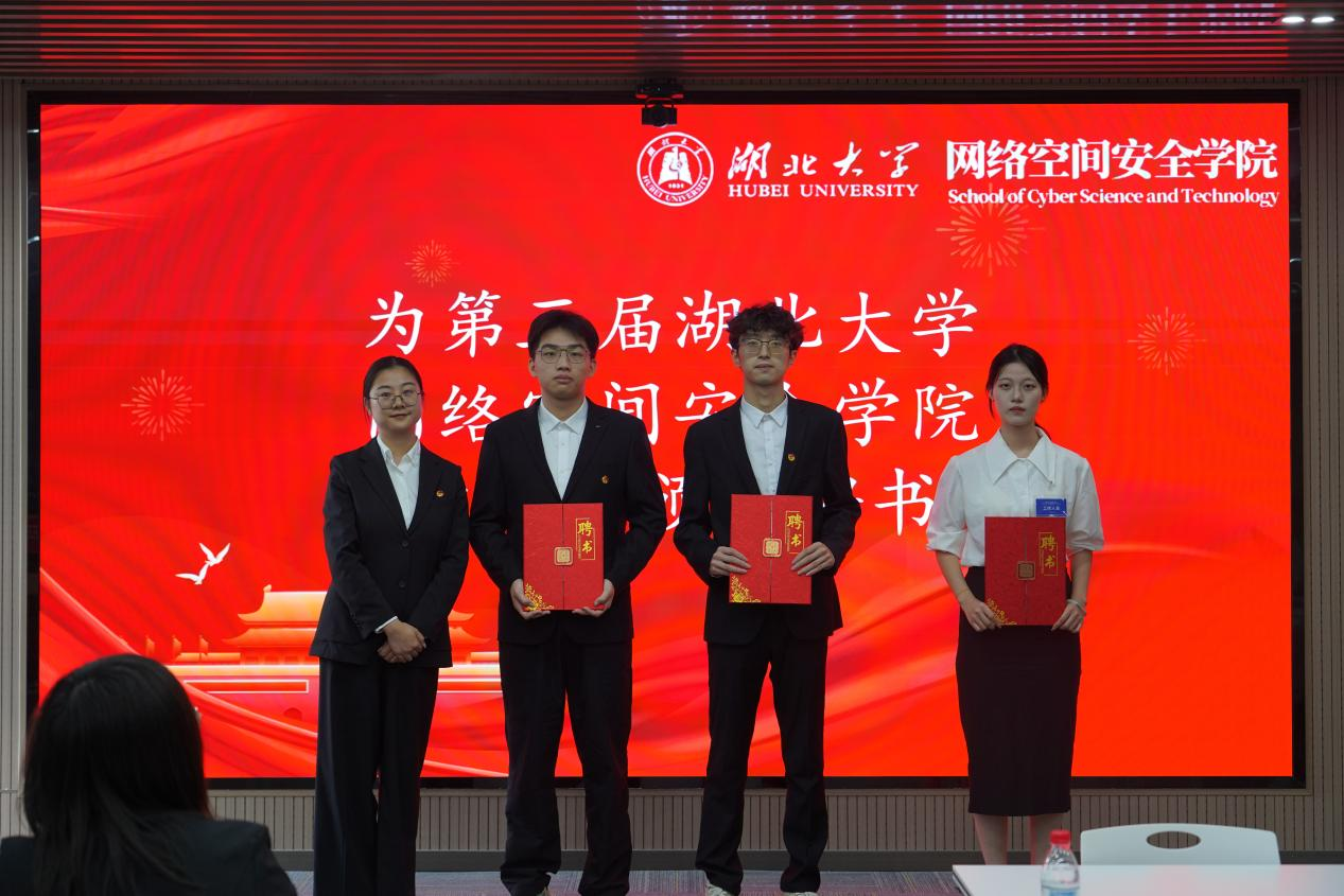 校团委副书记王佩雯及校学生会主席团易籼明共同向大会的召开表示祝贺,并肯定了我院过去一年的突出成绩。越是往前走、向上攀,越是要善于从走过的路中汲取智慧、提振信心、增添力量。相信湖北大学网络空间安全学院学生会一定能以此次大会的胜利召开为新的起点,争做先锋队,勇当排头兵,以新形象、新作风、新气魄,组织动员广大同学坚定跟党走,奋进新时代,在实现中华民族伟大复兴的中国梦中书写青春华章。