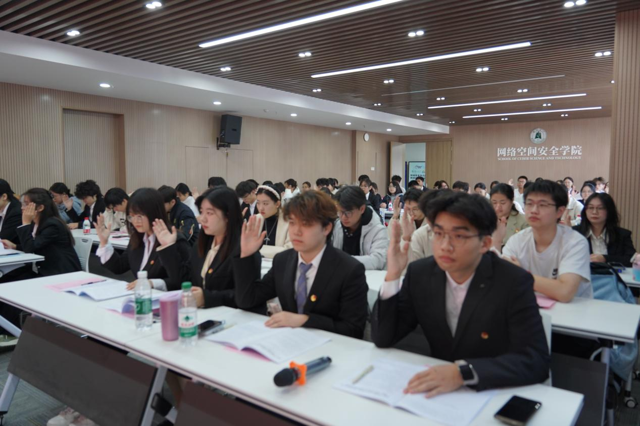 10月22日,网络空间安全学院在双创大楼A座1012报告厅召开了第三次团员代表大会和第三次学生代表大会。本次大会由青年志愿者指导中心副主任姚雨馨、院学生会宣传部成员罗睿莹共同主持。校团委副书记王佩雯、院党委副书记胡蓉、院团委书记朱奎闽、校学生会主席团易籼明、院第二届学生会执行主席黄思源、第二届团委副书记张志吉,学生会主席团成员,各兄弟学院的团委副书记、学生会主席以及学院学生代表出席大会。与会人员齐聚一堂,共商学生工作发展,共绘青春成长蓝图。网络空间安全学院第三次团员代表大会和第三次学生代表大会在庄严的国歌中拉开序幕。