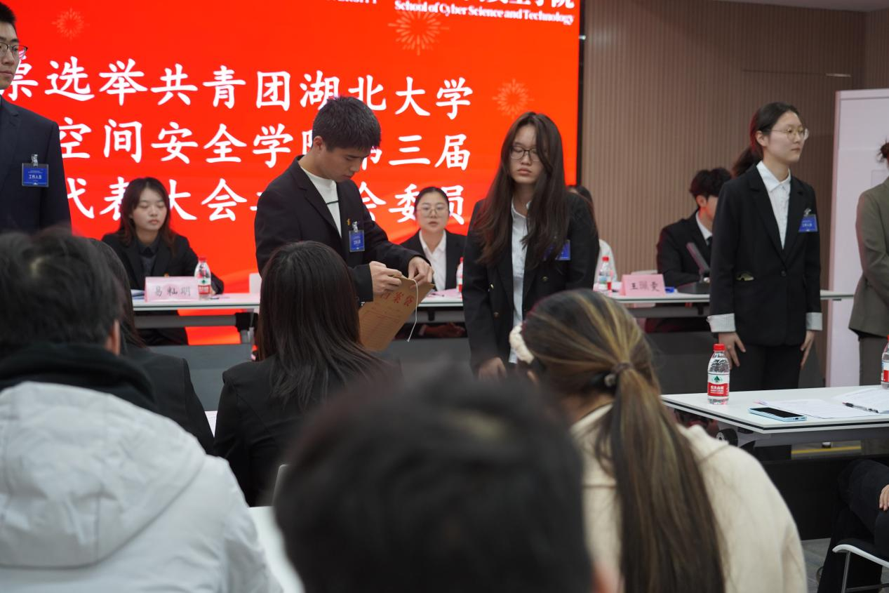 经代表们选举,大会确定了共青团湖北大学网络空间安全学院第三届团员代表大会委员会委员、学院学生会第三届主席团成员。